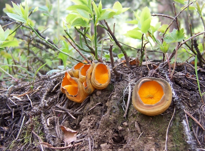 occasionally find snowbank fungi such as Discina and Caloscypha. We may also